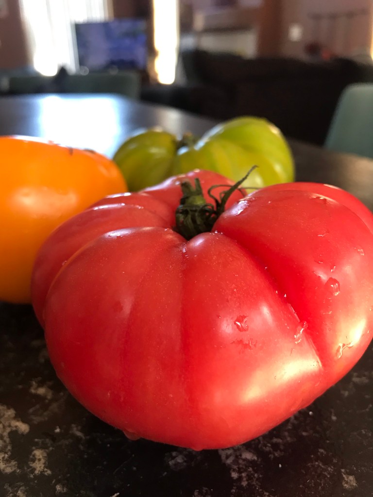 Ingredients: 3 large heirloom tomatoes (different colors and shapes if available)