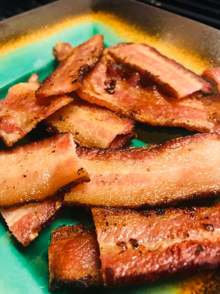 Set cooked bacon aside on a paper towel to cool.