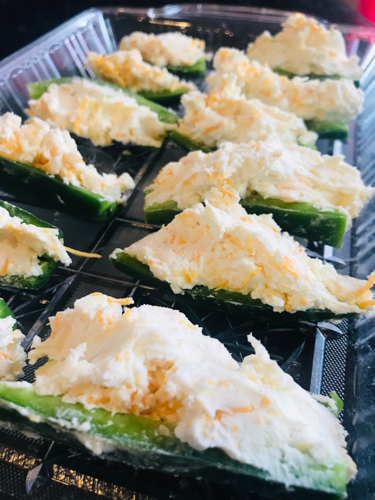 Assemble the peppers on a large sheet pan and begin scooping the cheese filling into each pepper (don’t overfill).
