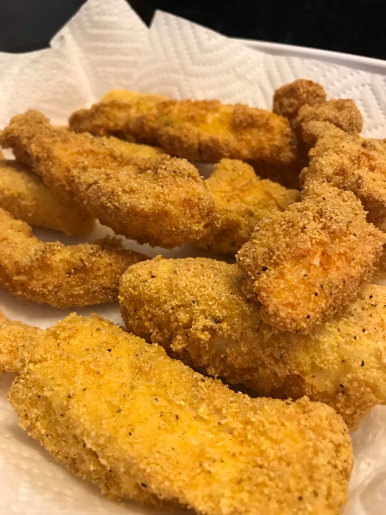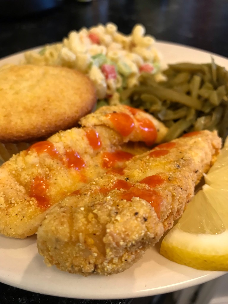 Squeeze a little fresh lemon juice over the fish as soon as you remove them from the oil & serve with remaining lemon wedges. If you like a little extra heat like my family does, I recommend Frank’s Red Hot! It’s spicy & slightly salty & it’s the perfect compliment to this delicious fish!