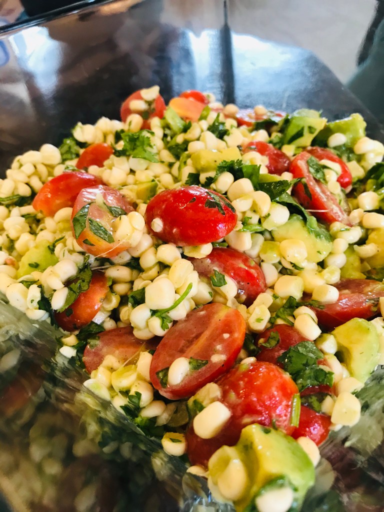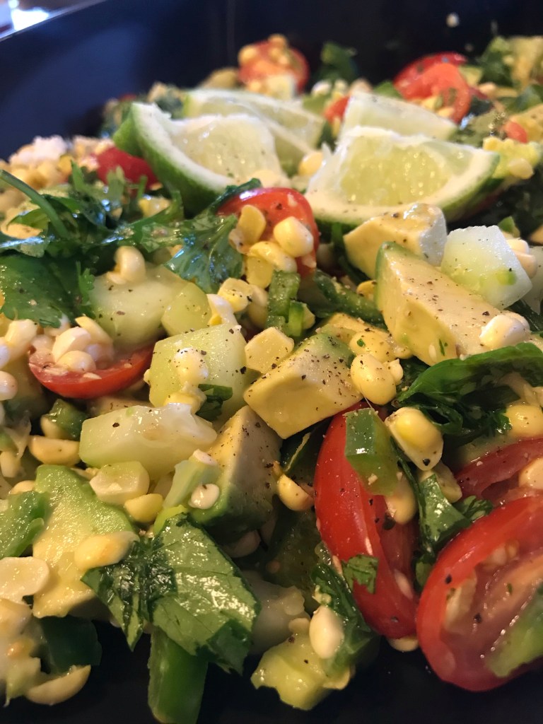 Slowly pour olive oil & lime juice marinade over the corn salsa