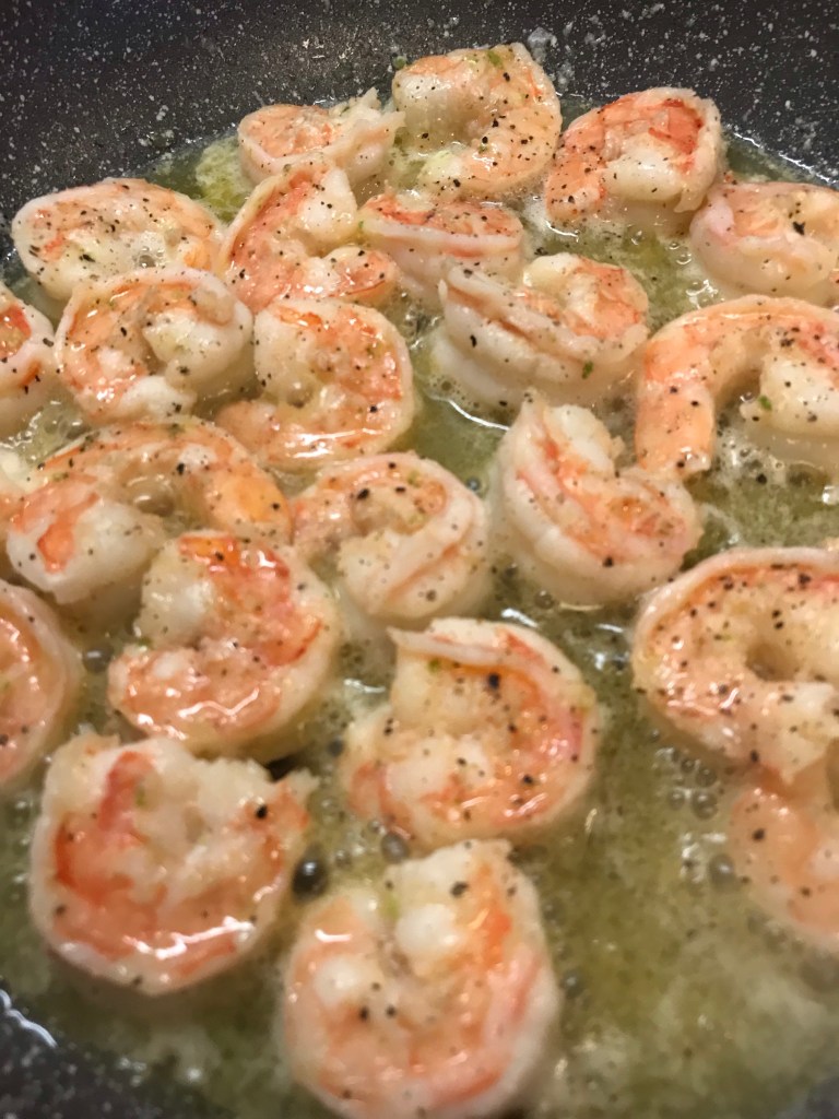 Once butter has melted add shrimp to pan and increase heat to medium