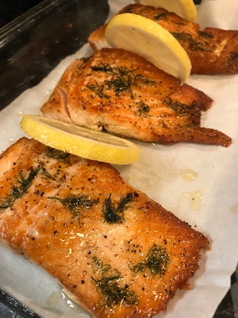 This simple dish is heart healthy & packed with omega-3 benefits! Crispy skin outside & juicy on the inside, this salmon is packed with delicious flavor! Pair with a side of wild rice & asparagus for a light fare. π£